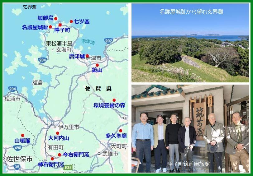 元学生5人との九州旅行も、天草巡り、国東半島巡りに次いで3度目となった。新しい行先として、佐賀県に散在する古城と窯元が選ばれた。10月27日出発で3泊4日、比較的ゆったりとしたスケジュールで、歴史を振り返り焼き物の美を堪能する旅となった。